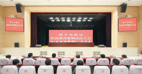 会上传达了中央第五督导组向吉林省的反馈意见和省委书记景俊海讲话精神,宣读了《关于表彰四平市“十佳政法干警”和“最美基层政法干警”的决定》,为受表彰的干警颁奖,通报了全市政法队伍教育整顿工作情况。